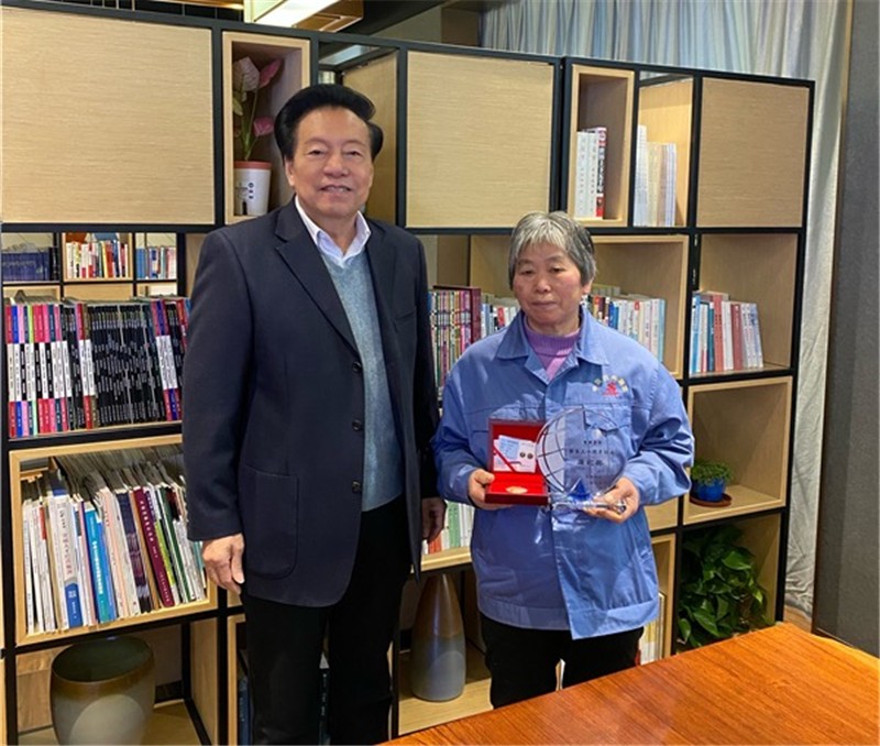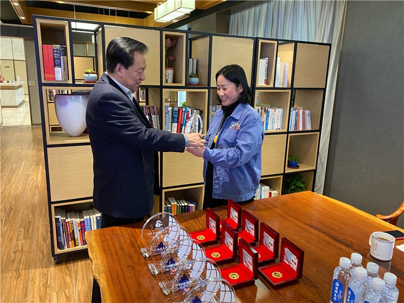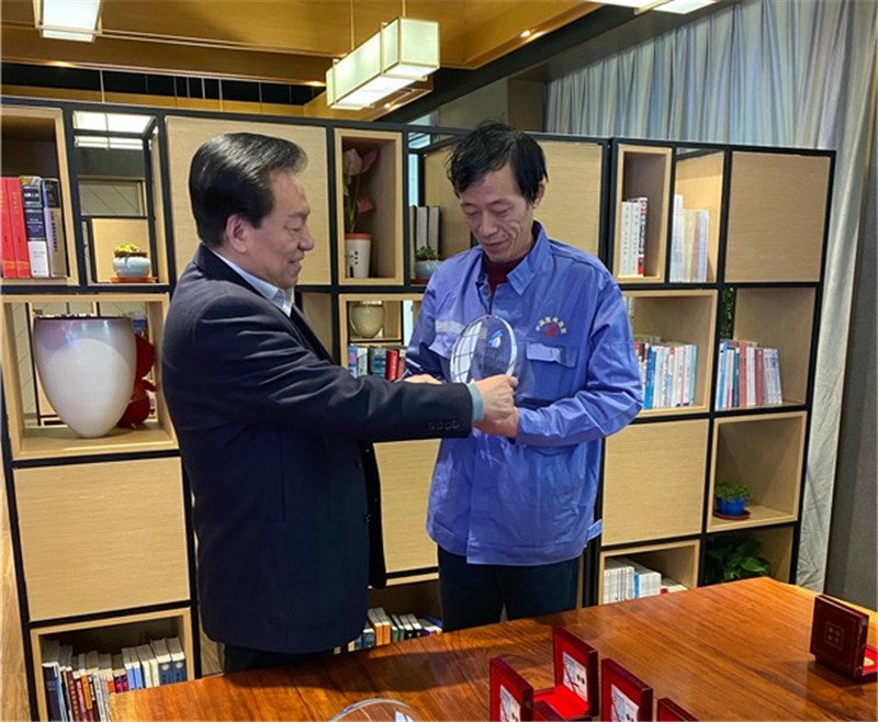 茶話會(huì)開(kāi)始前,集團(tuán)舉行了規(guī)模雖小,但非常莊重的榮譽(yù)授牌儀式,集團(tuán)創(chuàng)始人、董事長(zhǎng)茹伯興為老員工授牌。手捧由50克純金制成的榮譽(yù)紀(jì)念牌,老員工臉上都掛滿了歡喜與幸福。